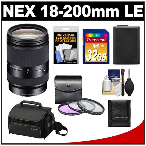 NEW! Sony Alpha NEX E-Mount E 18-200mm f/3.5-5.6 LE OSS Zoom Lens with Sony Case + 32GB Card + 3 UV/FLD/CPL Filters + Battery + Accessory Kit for NEX-3, NEX-C3, NEX-F3, NEX-5, NEX-5N & NEX-7 Digital Cameras best price